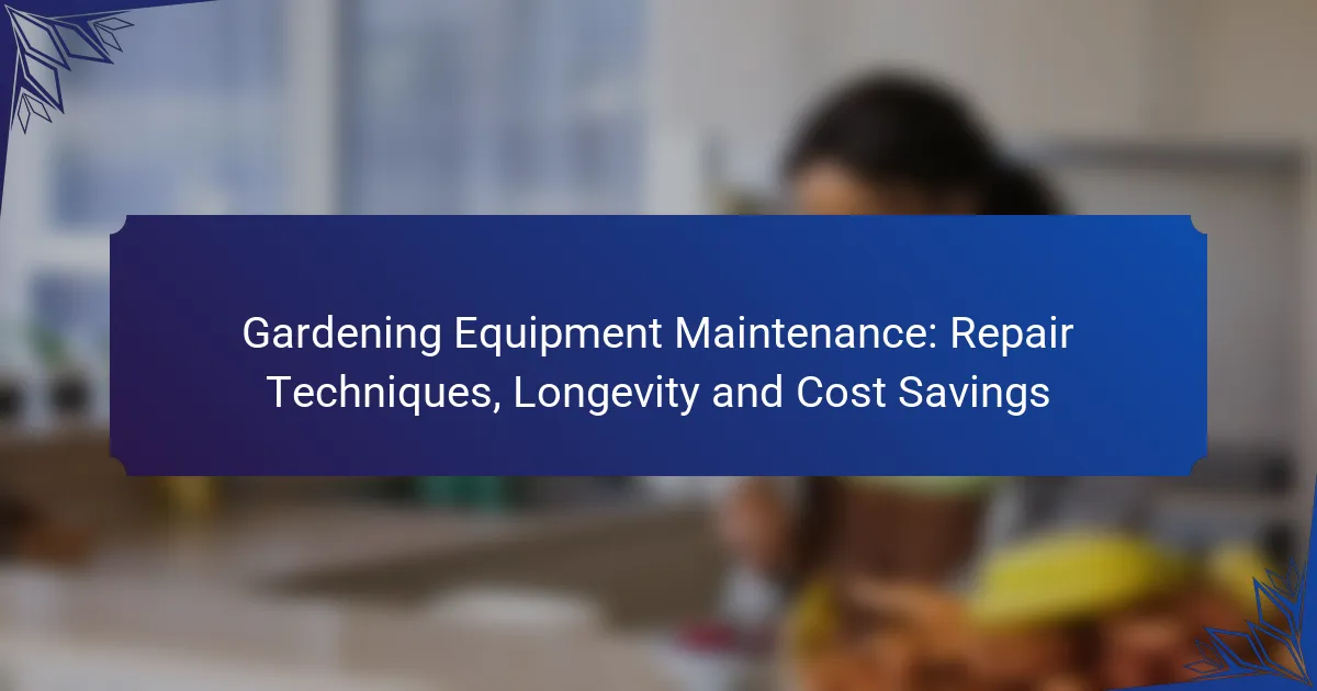 Common repair techniques for gardening tools include sharpening blades, replacing worn parts, fixing handles, and repairing electrical components. These methods can extend the lifespan of tools and save money on replacements.